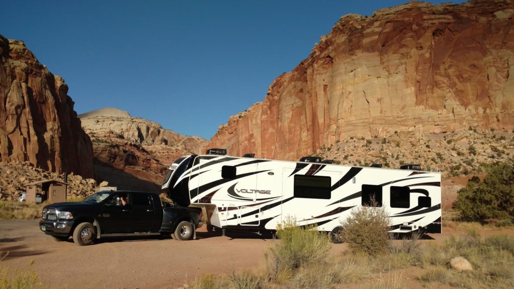 You are not crammed into a small parking space, all spaces are 11′ 6″ wide and angled with room to maneuver your unit when parking. FYI Standard lane width on a public roadway is 12 foot wide.