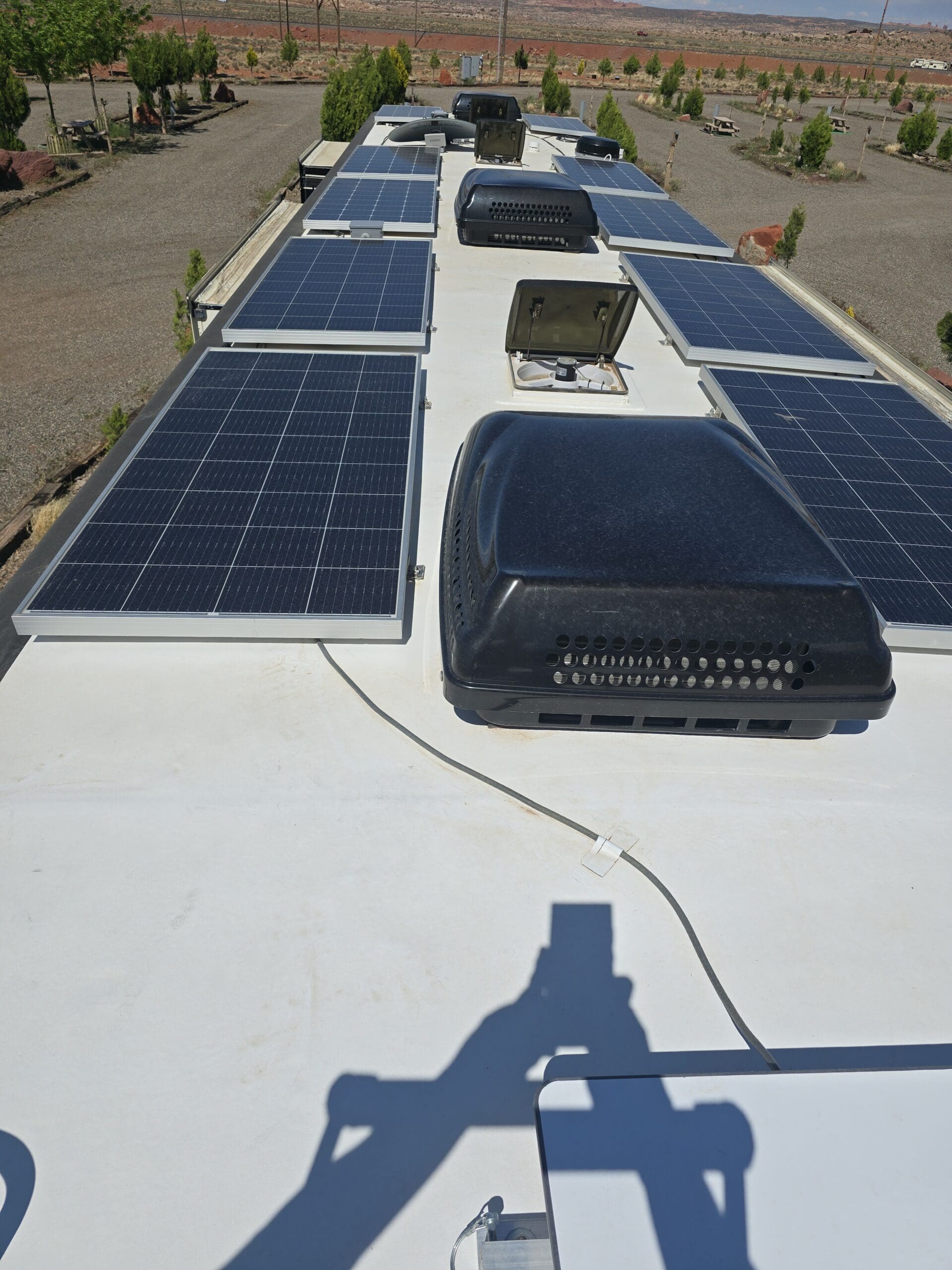- 2,000 Watts of Roof-Mounted Glass Solar Panels