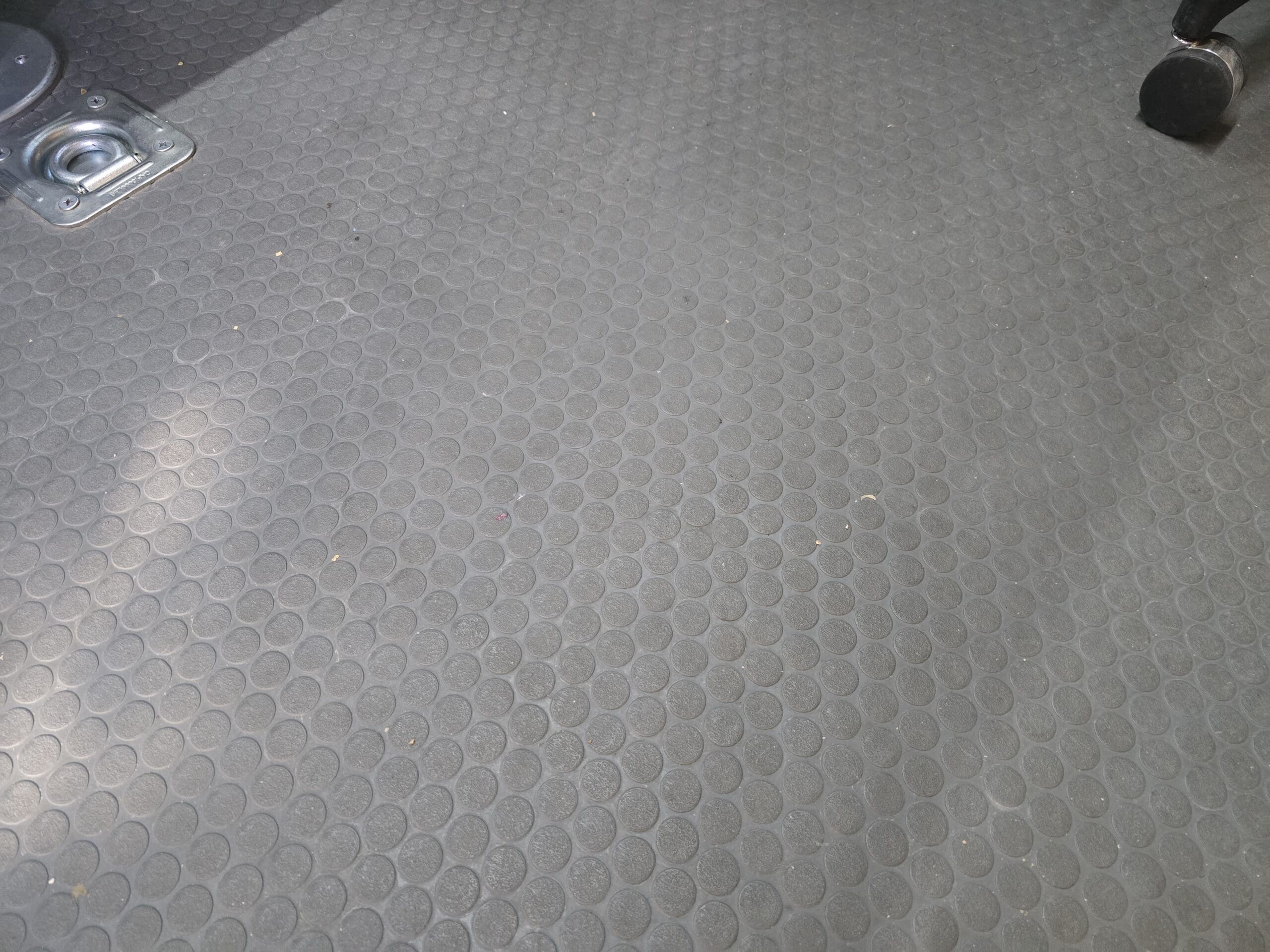 - Flat Coin-Pattern Garage Flooring (Replaces Rubber Diamond Plate — More Comfortable and Easy to Clean)